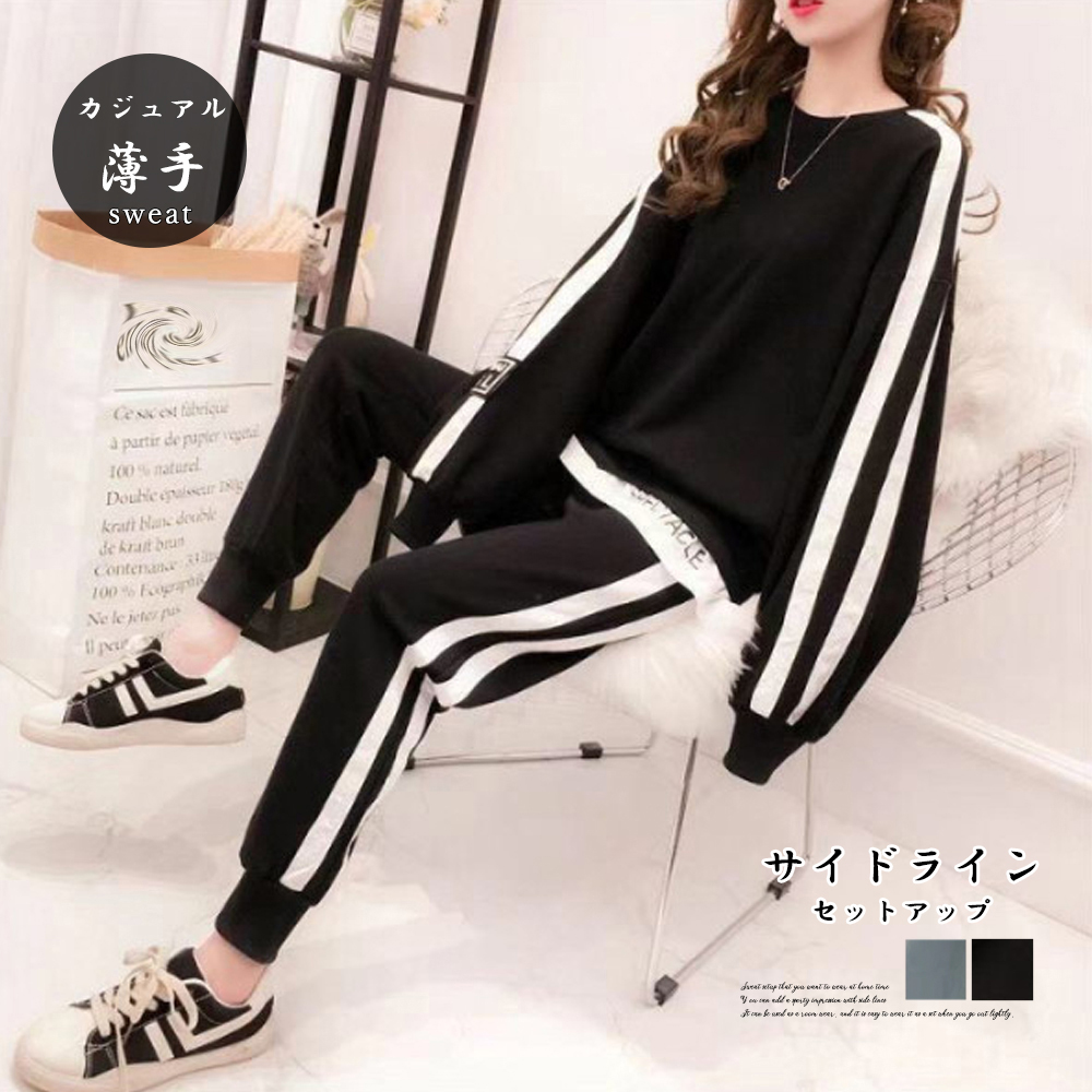 薄手で春先にぴったりの長袖トップスとパンツの2点セット