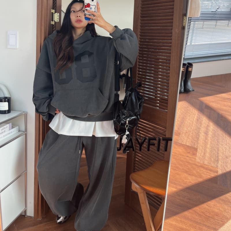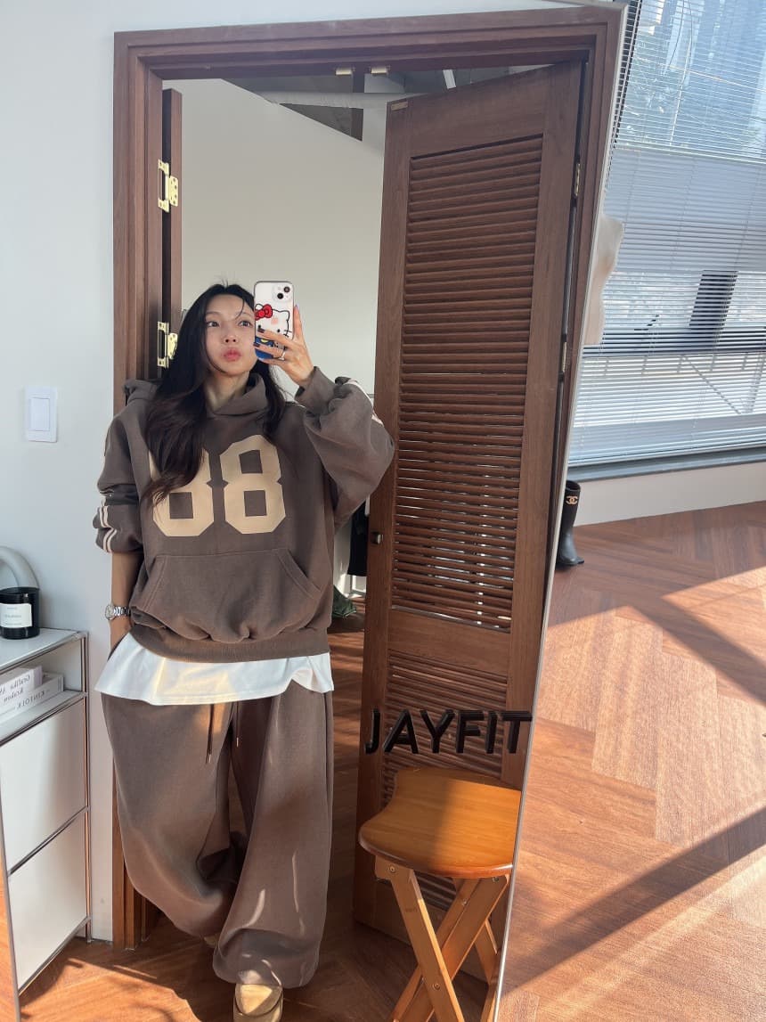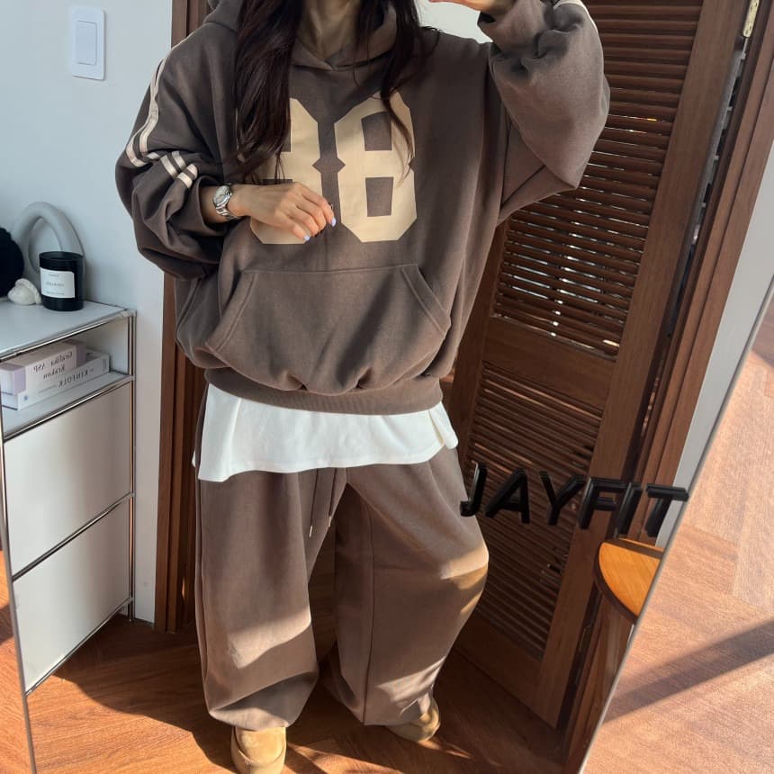 2025年秋冬新作の韓国風スウェット セットアップです。 数字プリントがおしゃれなパーカーとワイドパンツの2点セット。 裏起毛で暖かく、ゆったりとしたシルエットが今っぽい仕上がり。 カジュアルからお出かけまで幅広く活躍します。