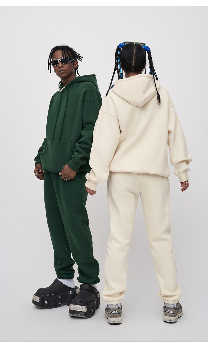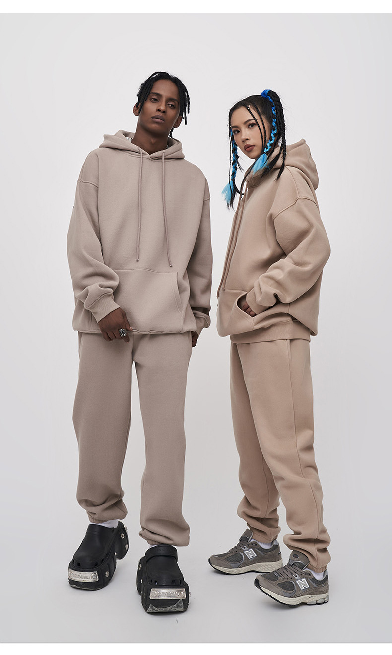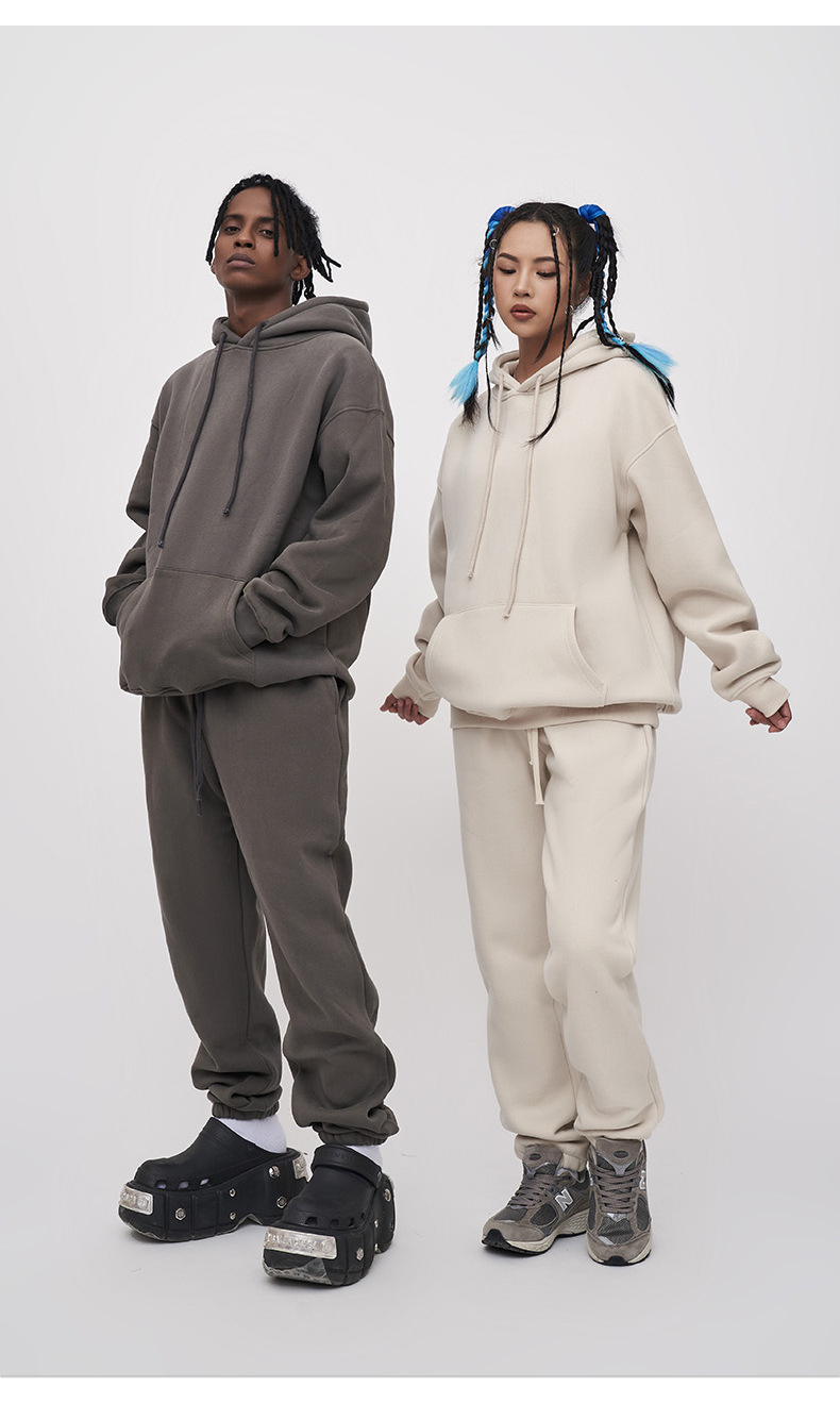 男女問わず着用できるゆったりシルエットで、パーカーとパンツの上下セットです。